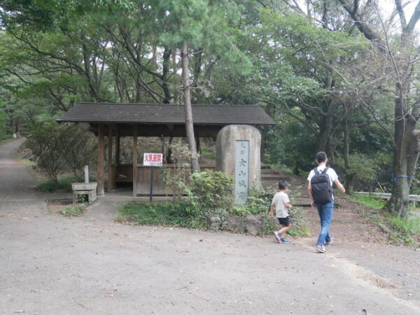 百名城スタンプが置いてある山頂近くの南曲輪休憩所が
