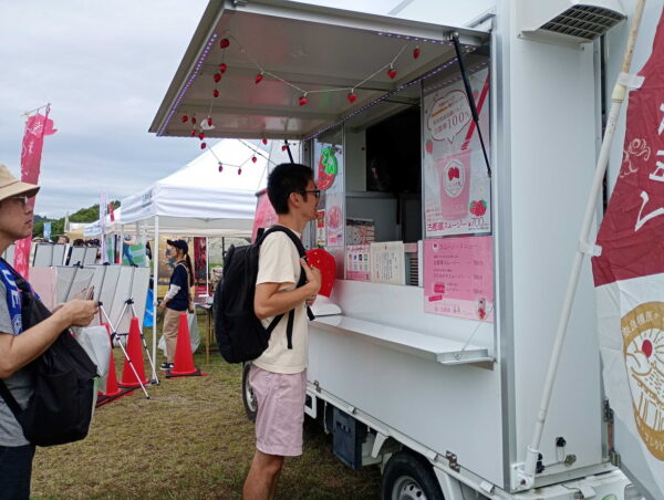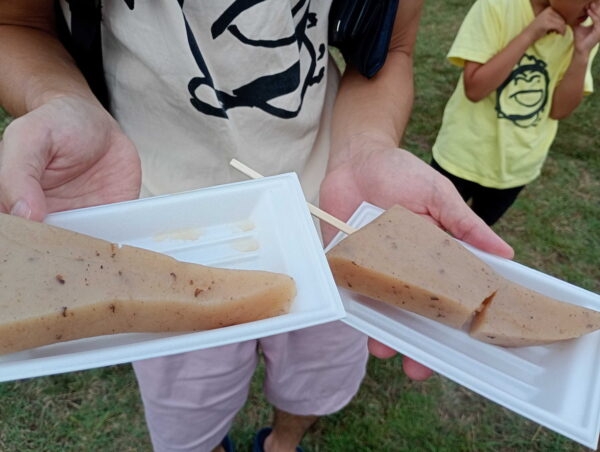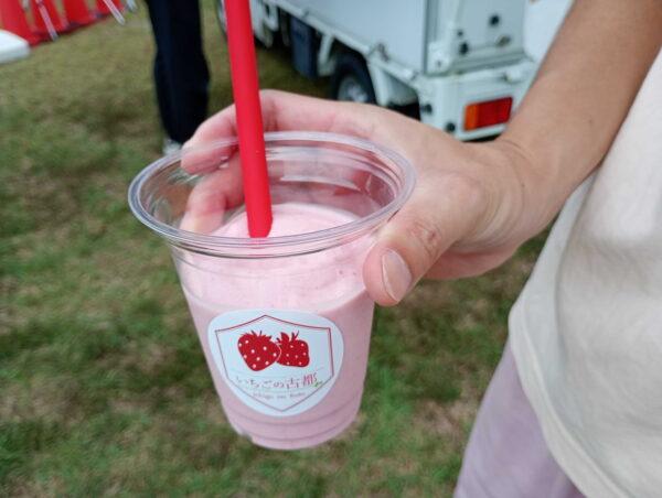 我々は美味しい串こんにゃくといちごスムージーをいただきました♪